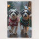 This festive design captures the joyful spirit of the holiday season, featuring an adorable dogs.Nestled in a winter wonderland, complete with a decorated Christmas tree, and beautifully wrapped presents. Snowflakes gently fall, adding a magical touch to the scene, while the vibrant colors of the holiday decorations create a warm and cheerful atmosphere.