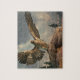 Um gavião de cauda vermelha espalha suas asas enquanto se abriga sobre uma pilha de rochas. O pássaro da presa dá um olhar forte em sua direção, parecendo um pouco zangado. Talvez este raptor tenha perdido uma refeição no chão esteja prestes a voltar ao ar.