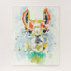 Hifi Llama I por Jennifer Goldberger. Apresenta o retrato de uma lama em um estilo vívido, semelhante a aquarela.