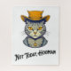 Uma ilustração digital de um gato de desenho animado em estilo vetorial usando um chapéu com a legenda Hoje Não, Humano.