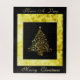 This ornate, graphic greeting card design, is of a Digitalized, scrolled, Christmas tree, in gilded gold, displayed upon a black, background, and framed in a simulated, embossed, pattern of gold-with Christmas Holiday greetings, in scripted gold, font.