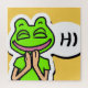 Este gráfico animado de arte digital gerado por computador mostra um homem com uma cabeça de sapo sorridente dizendo oi. A arte está no estilo do autocolante e está em amarelo brilhante. Este sapo engraçado e feliz foi criado usando uma geração de imagens da fonte IA DALL-E, e é certamente divertido para fãs de tecnologia, nova arte e sapos! Faz excelente aniversário, Natal ou outro presente de feriado.