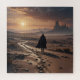 Um misterioso homem camuflado caminhando no pôr do sol.