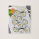 Alguns rolinhos de sushi deliciosos e deliciosos, comida japonesa. Esta é uma quebra-cabeça divertida para fazer, mas vai fazer você desejar sushi!