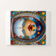 Humpty Dumpty, está dentro de uma autoestrada de pedra adornada com frutas, flores e folhas. Vestindo um chapéu azul com listras vermelhas e uma jaqueta correspondente, Humpty Dumpty sai da ilustração contra um fundo estrelado.
