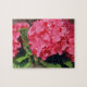 A fotografia original de MaeFlowers nesta Quebra-cabeça de Jigsera é um close-up de hífenes cor-de-rosa e das suas folhas verdes primavera revestidas e irregulares. A pompom central das pétalas de flores quase preenche a foto, cercada pelas folhas verdes e pedaços de outras pompons de flores de cada lado.