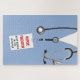 Quebra-cabeça de enfermeira criativa com citação, esfregões hospitalares, um estetoscópio e uma engraçada faca do exército suíço. Editar texto para adicionar o nome da enfermeira.