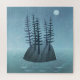 Uma ilha remota no meio do oceano com pinheiros. A lua brilha nesta cena pacífica, e a aventrura acena! Pintura de paisagem original de Nic Squirrell.