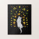 Quebra-cabeça Ilustração de gato branco com folhas de outono