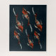 Mão desenhada em abstrato de água, peixes koi nadando design. cor vermelha e azul marinho.
