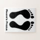 Pegadas infantis. Peças de tamanho excessivo, ideais para crianças mais novas. Os pés negros são impressos em fundo branco.