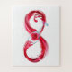 Símbolo infinito do fluxo contínuo de vinho tinto que entra em vidro de vidro sobre fundo branco.