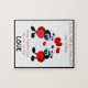 Um par de insetos coloridos pequenos bonitos do amor dos desenhos animados, de corações vermelhos brilhantes, e do sentimento morno da liga do AMOR para formar este design amor-temático do divertimento. A aprovação, representa-o: É dia dos namorados, você e o amor de sua vida estão sentando-se na mesa que une este quebra-cabeça, e a mensagem vem transversalmente, "você casar-me-á?" Agora, isso é apenas demasiado romântico para palavras. Você ganhará algum tempo principal do smooch para aquele. Personalize este quebra-cabeça com sua própria informação pessoal mudando o texto nos campos do texto. E se você deve não se aprontar para propr, ou já casado, você pode personalizar esta toda a maneira que você quiser. De qualquer maneira, é apenas assim que bonito darned! APRECIE!