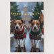 This festive design captures the joyful spirit of the holiday season, featuring an adorable dogs.Nestled in a winter wonderland, complete with a decorated Christmas tree, and beautifully wrapped presents. Snowflakes gently fall, adding a magical touch to the scene, while the vibrant colors of the holiday decorations create a warm and cheerful atmosphere.