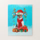 Quebra-cabeça Jack Russell na neve com presentes de Natal