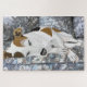 Esta maravilhosa Quebra-cabeça de Jigsera, mostra a minha imagem de uma triz cor Jack Russell Terrier, dormindo pacificamente num sofá floral azul. Um presente adorável para um amante Jack Russell.