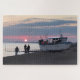 Esta bela quebra-cabeça de quebra-cabeça colorida mostra minha fotografia do sol do cenário tirada em janeiro, atrás do barco de pesca em Hythe Bay Kent. A vista olha através da baía em direção a DymChurch. No local, o barco de pesca acabou de ser arrastado pela zona. 20 x 30 1014 peças