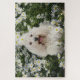 Este design bonito apresenta um cachorro branco em um jardim de flores brancas Primavera #quebra-cabeça #jigsaw #jigsawpuzzles #dog #primavera #gatinhos #presentes