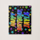 Este design de serra de aniversário, vibrante e com tema de aniversário, tem a mensagem "HAPPY BIRTHDAY, JAYLA" com os personagens que têm um espectro colorido de arco-íris inspirado em um padrão de gradiente, além de um campo divertido de estrelas como padrão de fundo. Uma quebra-cabeça colorida como esta pode ser uma maneira divertida de enviar uma mensagem de saudação de aniversário a alguém chamado Jayla. [~Z0000468]