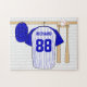 Quebra-cabeça Jérsei de basebol azul e branco personalizado