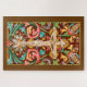 Lent é o solene observatório religioso cristão no ano litúrgico que antecedeu a celebração alegre da Páscoa. É um tempo de reflexão sobre o princípio central do cristianismo, encarnado em João 3:16, ou seja, que Deus enviou Seu único Cristo de Filho Jesus para o mundo para resgatar a humanidade do pecado através de sua crucificação sacrificial e da ressurreição. Este esplêndido quebra-cabeça apresenta um crucifixo enquadrado por formulações florais elaboradas em matizes ricos. Crédito da Imagem: Imagem antiga de Cristo na cruz de um impressão devocional do final do século 19, editor original desconhecido, da coleção privada de efemérsia religiosa do designer.