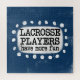 "Jogadores de Lacrosse Se Divertem Mais" é um design de texto giro com forma de sotaque branca cercado por pontos brancos.