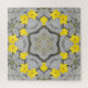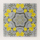 A mesmerizing kaleidoscopic design crafted from vivid yellow flowers and green stems, arranged in a symmetrical, star-like mandala. The grayscale sandy background with sparse grass enhances the vibrant floral pattern, creating a striking contrast between nature’s raw texture and geometric precision. Ideal for art lovers who appreciate the fusion of organic beauty and digital symmetry, this piece brings warmth, balance, and visual intrigue to any space.