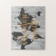 Um design bonitinho com uma frase de texto de ouro e um mapa negro do mundo sobre um fundo de cinza. Artista: Studio W