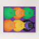 Six judgmental cats in bright colors