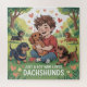 This delightful, boy-focused design is perfect for any young dachshund lover or dog enthusiast. The artwork features a playful boy joyfully interacting with his beloved dachshund—perhaps playing fetch, sharing a cuddle, or embarking on a backyard adventure. The dachshund, with its iconic long body, floppy ears, and expressive eyes, is illustrated in a friendly, cartoon style that brings out both the dog's and the boy's personalities.