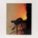 Uma foto de um Sunset colorido do Kansas com cerca, grama e pneu velho. A oeste de Sterling Kansas USA no país. Isso é em um Quebra-cabeça.