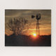 Um disparo de Kansas Sunset a norte de Hutchinson Kansas com um Céu Ouro, Silhouette de Windmill, e silhueta de árvore que é brilhante e colorido que está em um Quebra-cabeça.