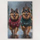 This festive design captures the joyful spirit of the holiday season, featuring an adorable dogs.Nestled in a winter wonderland, complete with a decorated Christmas tree, and beautifully wrapped presents. Snowflakes gently fall, adding a magical touch to the scene, while the vibrant colors of the holiday decorations create a warm and cheerful atmosphere.