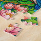 Brighten up your child's playtime with this vibrant kids' jigsaw puzzle featuring three colorful kingfishers perched among lush lily pads. Set against a backdrop of blooming pink water lilies and golden cattails, this beautifully illustrated scene captures the magic of a hidden pond. This high-quality puzzle is an excellent educational tool for teaching children about river wildlife while helping them develop fine motor skills, color recognition, and patience. It’s a perfect gift for any young nature enthusiast or bird lover.