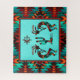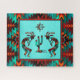 Aproveite este Quebra-cabeça único "Um dos tipos" do sudoeste de Kokopelli! Ele apresenta dois Kokopelli sudoeste tocando flauta e dançando em volta de um cacto sob o sol em um fundo de turquesa... cercado por uma Turquesa, Laranja e Borda Negra! Design De Arte Original Pelo Artista Kerry Miller.