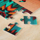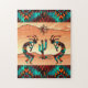 Aproveite este Quebra-cabeça único sudoeste de Kokopelli! Ele apresenta dois Kokopelli sudoeste tocando flauta e dançando em volta de um cacto no deserto Sob o Sol no Deserto...Cercado por um fundo turquesa, laranja e preto! Design De Arte Original Pelo Artista Kerry Miller.