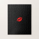 Os lábios de batom vermelho são o único pedaço de cor neste difícil e desafiador quebra-cabeça de quebra-cabeça preto sólido. Um beijo de boa sorte! Um design único que será fácil de começar e duro de terminar. Uma diversão divertida para uma noite romântica, ou um belo presente para Dia de os namorados, aniversário ou qualquer ocasião romântica. Design de Tuzi Williams.
