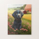 Labrador Retriever Black Puppy in a field of flowers on a farm. Lots of pet and scenery designs in my stores. Add this design to other products. Add text.
