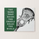 Quebra-cabeça de lacrosse criativa com lax stick e citação esportiva única.