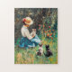 Quebra-cabeça Lady com chapéu brincando com Kittens na grama