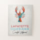 Design de Lafayette Louisiana brilhante e colorida que é aprovado a 100% de lagosta. Cores quentes de vermelho, laranja, turquesa e aqua num padrão de cor d'água num fundo neutro.