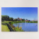 Linda vista do lago Marinho Maldon (antes o lago do barco ou o lago de natação) olhando em direção à igreja. Maldon é uma vila em Essex, Inglaterra, no estuário de Blackwater.