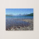 O Parque Nacional Glacier tem muitos lagos bonitos, e o lago McDonald é um dos mais acessíveis. Aqui está uma vista do lago de manhã com o sol apenas ascensão e uma silhueta de rochas empilhadas.