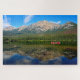 Reflexões no lago Pirâmide perto de Jasper, Canadá