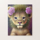 Quebra-cabeça Leão-Bebê-Cute com Flores Rosa Gráfico