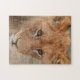 Uma foto do fim-acima de um filhote de leão novo que olha direito no © da câmera e no ® Bigstock® - todos os direitos reservados.