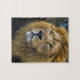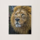 Um leão masculino majestoso imprimiu em uma disposição de artigos