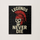 Trabalho de arte do crânio espartano com mensagem "Legendas Nunca Morrem", simbolizando a força e a bravura eternas.