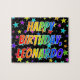 Esta animada e vibrante design de quebra-cabeça de quebra-cabeça com tema de aniversário tem a mensagem "HAPPY BIRTHDAY, LEONARDO" com os personagens que têm um espectro colorido de arco-íris inspirado num padrão de gradação, além de um padrão de fundo de estrelas excitante. Um quebra-cabeça vibrante como este pode ser uma maneira divertida de enviar desejos de aniversário a alguém chamado Leonardo. [~Z0000468]