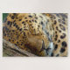 Apresentando uma visão impressionante de uma aproximação de um leopardo dormindo. Esta é uma bela foto nessa quebra-cabeça